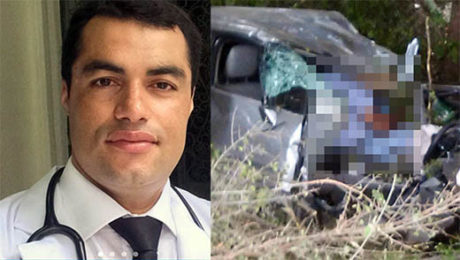 Segundo informaA�A�es da polA�cia, o corpo do mA�dico foi encontrado dentro de um veA�culo Honda Civic, de cor grafite, que colidiu contra uma A?rvore na localidade conhecida como a�?curva do angicoa�� e desceu uma ribanceira prA?xima a uma ponte sobre o rio de mesmo nome.