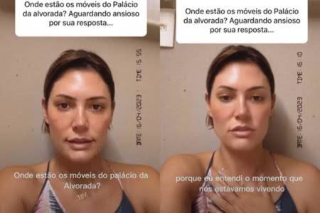 Em vídeo, Michelle lê a pergunta feita: “Onde estão os móveis do Palácio da Alvorada? Aguardando ansioso por sua resposta…”