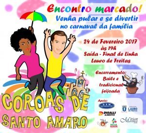 Venha se divertir em famA�lia com o brilho e a magia do carnaval, no tradicional bloco “COROAS DEA� SANTO AMARO DE IPITANGA”.