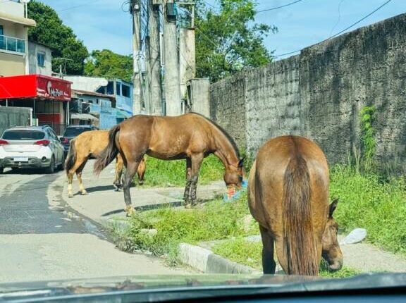 Moradores da Av. Teocrito Batista, localizada no bairro Caji em Lauro de Freitas, estão denunciando o abandono e a ausência de serviços básicos na rua. Além dos buracos que prejudicam o tráfego, a via apresenta uma vegetação exuberante, além de animais como cavalos soltos nas ruas.