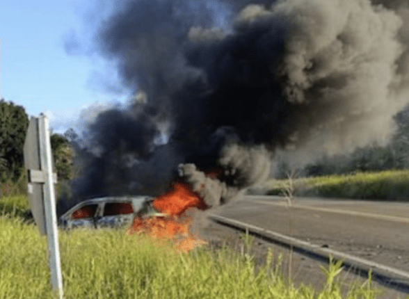 A Polícia Rodoviária Federal (PRF) informou que a causa do acidente foi uma conversão equivocada da motocicleta da BR-101 para a BR-330, quando acabou batendo de frente com o carro de passeio. Na sequência, os veículos pegaram fogo.