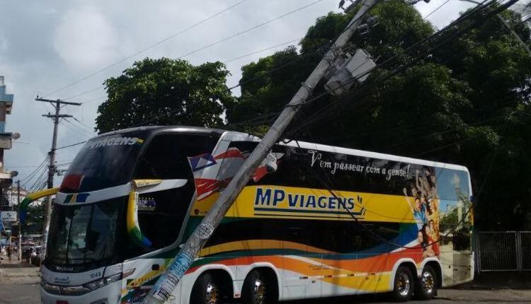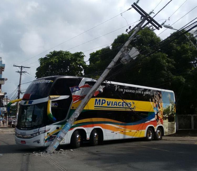 Um A?nibus colidiu em um poste na avenida Dendezeiros, na Cidade Baixa, na manhA? desta terA�a-feira, 1A?, por volta das 6h. Com o impacto com o veA�culo de turismo, o equipamento de iluminaA�A?o caiu em cima do coletivo.
