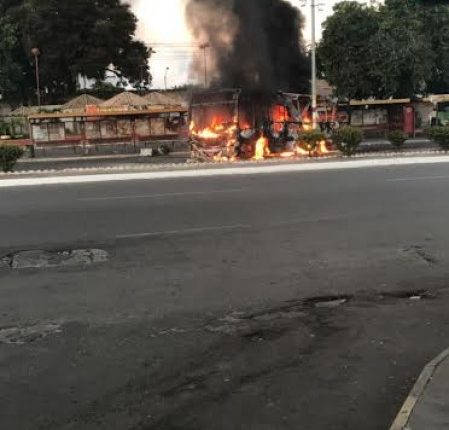 A�nibus A� incendiado em SimA�es Filho na manhA? deste sA?bado (14). Veja vA�deo