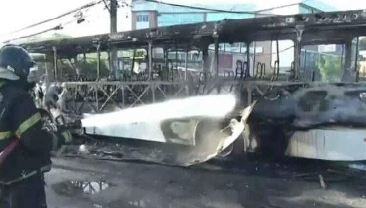 Ônibus pega fogo em Lauro de Freitas após pane elétrica