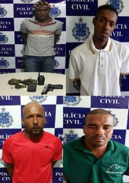 AlA�m da dupla, que estava com mandados de prisA?o em aberto, outros dois criminosos foram capturados. Luciano A� apontado como um dos autores de um triplo homicA�dio, ocorrido em outubro, no bairro do Alto do Santo AntA?nio. As vA�timas foram Aderlan Silva dos Santos, Rafael Santos de Andrade e Josevaldo das Neves Santos. JA? Gilvan, A� acusado de matar Leonardo de Jesus Santos, em setembro, na cidade de JiquiriA�A?.