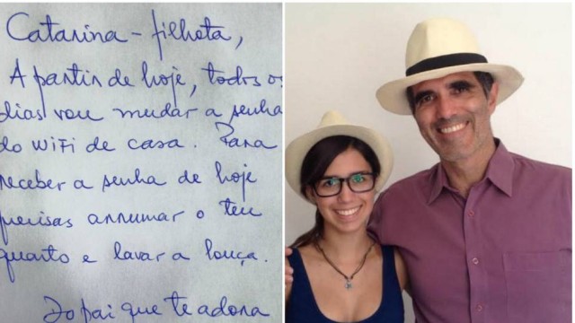 O operador de turismo e vice-presidente da Casa Portugal, Paulo Machado, escreveu o bilhete para a filha Catarina, de 17 anos, nesta quinta-feira. Em menos de 24 horas, a publicaA�A?o foi compartilhada mais de 83 mil vezes no Facebook, e ganhou tambA�m o WhatsApp. Ele contou ao EXTRA que a tA?tica deu certo. Ele escreveu o bilhete A� mA?o, publicou na pA?gina da filha no Facebook e, em cinco minutos, ela respondeu com duas fotos: uma da pia sem louA�a e outra do quarto arrumado. Ele, entA?o, liberou a senha.