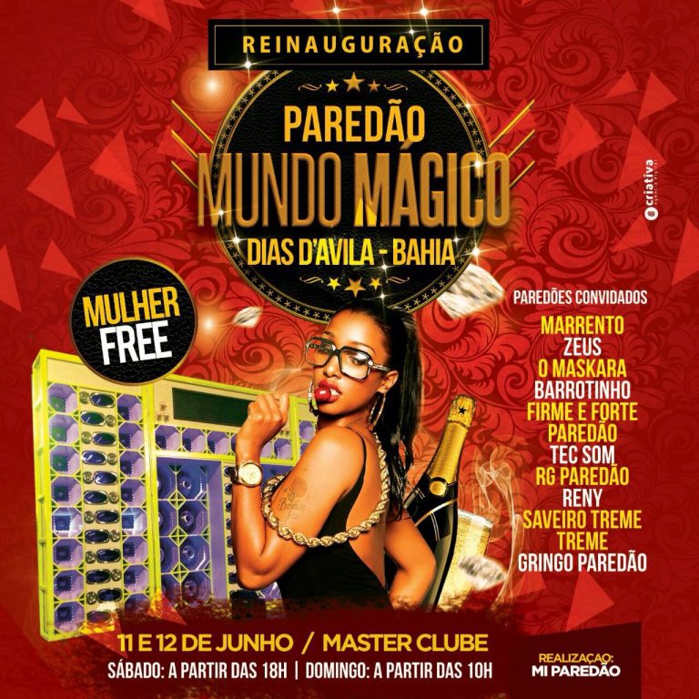 imageNos dias 11 e 12 de junho, no Master Clube, em Dias D’A?vila, acontecerA? a reinauguraA�A?o do ParedA?o Mundo MA?gico. No encontro, que contarA? com a presenA�a de 10 convidados, as mulheres entram gratuitamente.