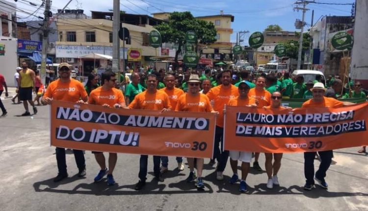 Partido Novo protesta contra aumento de IPTU durante cortejo cultural de Lauro de Freitas