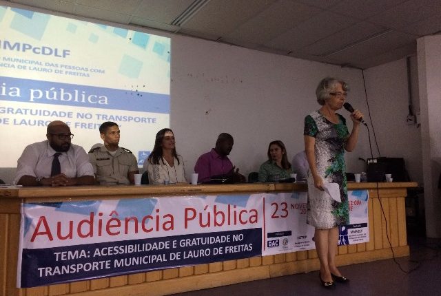 Depoimentos carregados de emoA�A?o e revolta marcaram a audiA?ncia pA?blica sobre acessibilidade e gratuidade no transporte pA?blico laurofreitense, realizada pelo Movimento Municipal da Pessoa com DeficiA?ncia de Lauro de Freitas (MMPcDLF), na manhA? desta quarta-feira (23), no auditA?rio da faculdade Unime, na Avenida Luiz TarquA�nio, que teve como tema: a�?Acessibilidade e gratuidade no transporte pA?blico de Lauro de Freitasa�?.