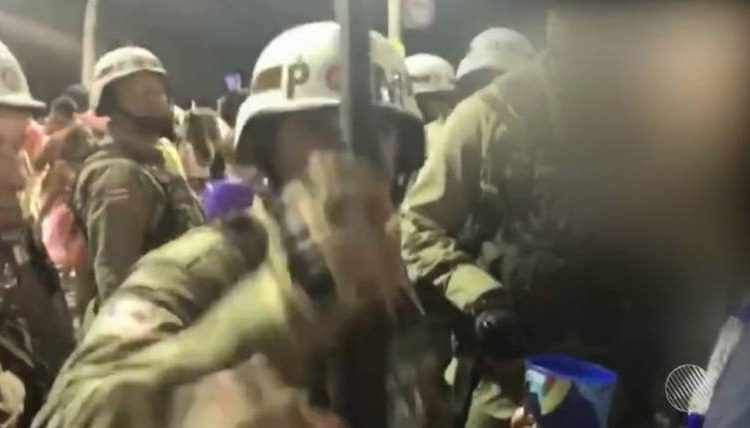 Um vA�deo feito durante a quinta-feira (9) no carnaval de Salvador mostra um policial militar derrubando o celular de uma foliA? com uma coronhada, enquanto ela filmava uma abordagem. O caso aconteceu no circuito DodA? (Barra-Ondina).