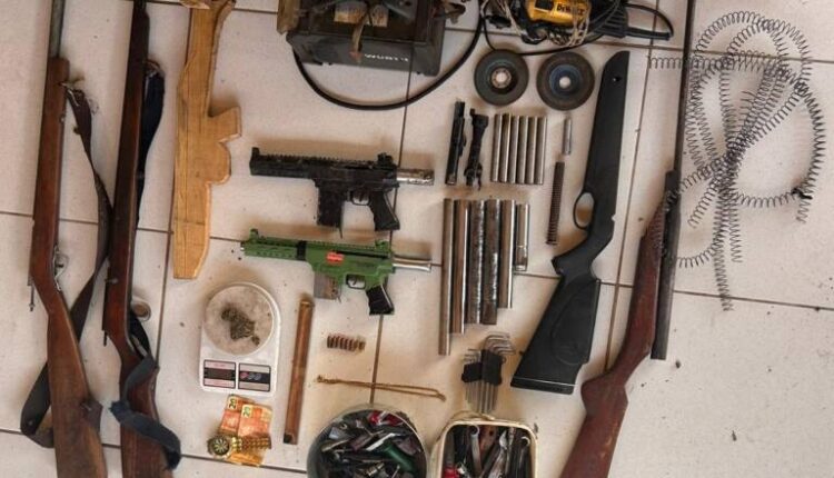 Durante as diligências, os policiais localizaram um imóvel adaptado para a produção artesanal de armamentos. No local, foram apreendidas duas submetralhadoras e três espingardas de fabricação caseira, além de munições de calibre .380, diversas peças metálicas e ferramentas utilizadas na montagem das armas.