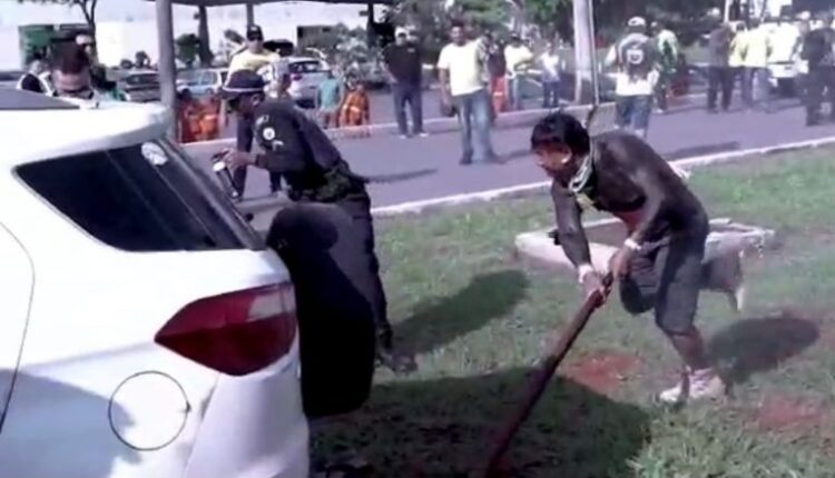 Um vídeo registrado nessa quinta-feira (8) mostra um confronto entre indígenas e policiais militares, em Brasília. Conforme a reportagem, a confusão iniciou após um esquerdista jogar o carro para cima dos índios, que protestam contra Lula.