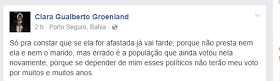 A assessoria de comunicaA�A?o da Prefeitura de Porto Seguro informou ao G1, no final da tarde desta terA�a-feira (22), que o prefeita da cidade, Claudia Oliveira , estA? em BrasA�lia junto com o esposo RobA�rio Oliveira , ficou sabendo da decisA?o da JustiA�a pela manhA?. Ainda conforme a assessoria, a prefeitura aguarda aval de advogados para poder emitir um posicionamento sobre o caso.