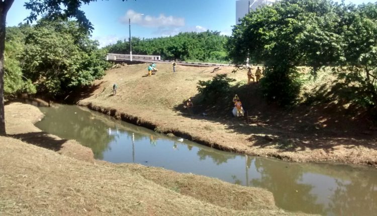 Trecho do Rio Ipitanga sendo limpo para evitar novos alagamentos na cidade