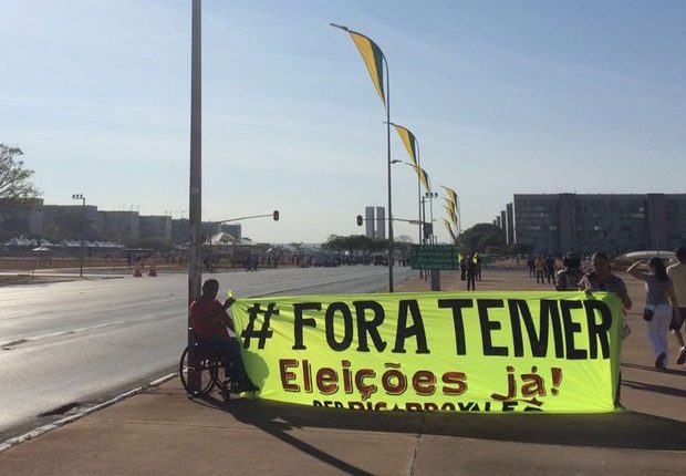 Ao final do desfile, quando Temer desceu do palanque para se dirigir ao carro oficial, um grupo entoou o coro “Golpistas, fascistas, nA?o passarA?o”