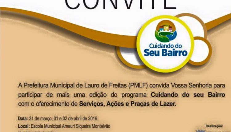 O Projeto Cuidando do seu Bairro, iniciativa da Prefeitura Municipal de Lauro de Freitas, irA? oferecerA�a partir da prA?xima quinta-feira (31), atA� oA�prA?ximo sA?bado, 2 de abril, diversos serviA�os aos moradores do Residencial Lauro de Freitas, no bairro deA�Capiarara e adjacA?ncias. A atividade serA? realizada das 8h A�s 12h, na Escola Municipal Amauri Siqueira MontalvA?o.