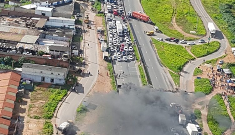 Devido ao protesto o trA?nsito estA? parado no Km 14, na regiA?o do Centro de Abastecimento de Salvador (Ceasa) de SimA�es Filho.