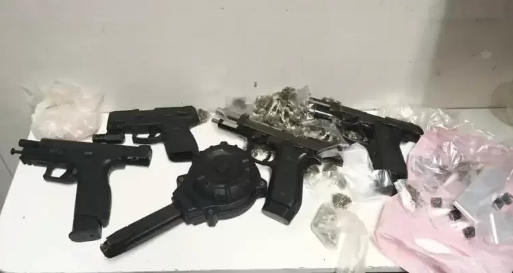 Com os suspeitos, de acordo com a PM, foram encontrados quatro pistolas, duas de calibre 380, uma de 9mm e uma de calibre 4.5mm, 51 pinos de cocaína, 55 pedras de crack e 82 porções de maconha.