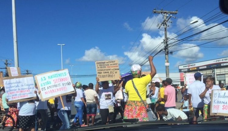 Integrantes da comunidade quilombola Quingoma promoveram um protesto na manhA? desta terA�a-feira (29), na Estrada do Coco e CA?mara de Lauro de Freitas.