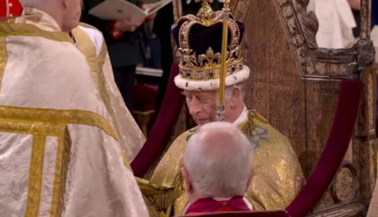 Após o casal se sentar, o arcebispo de Canterbury anunciou a presença do rei para a congregação. Depois de orações e cantos, Charles leu um juramento para os presentes e prometeu servir ao povo do Reino Unido.