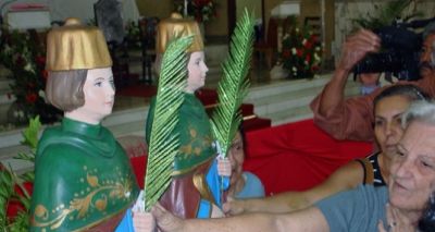 Os festejos pelo dia de SA?o Cosme e SA?o DamiA?o seguem nesta terA�a-feira (27), em muitas casas e igrejas na capital baiana. Para celebrar a memA?ria dos irmA?os gA?meos, o Arcebispo de Salvador e Primaz do Brasil, Dom Murilo Krieger, celebrou um missa na ParA?quia da Liberdade,A�que leva o nome dos santos.