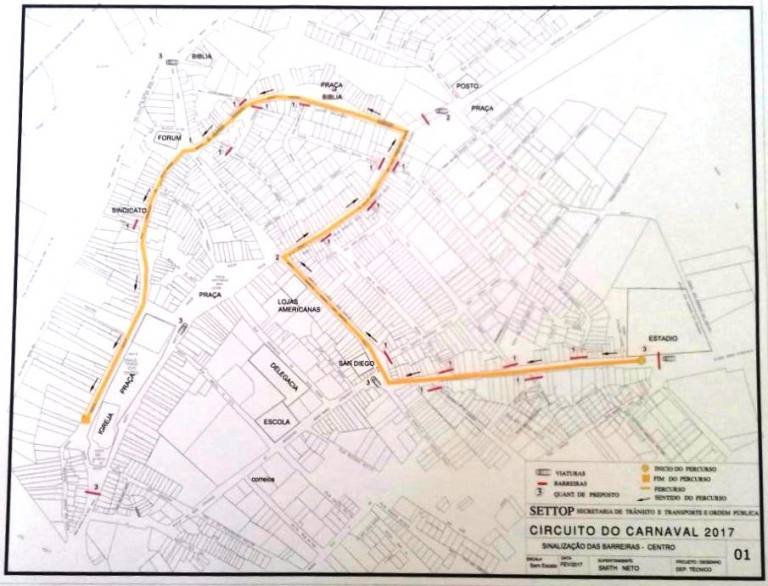 Secretaria de TrA?nsito Transporte e Ordem PA?blica divulga mapa com informaA�A�es do circuito do carnaval em Lauro de Freitas.