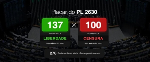 Site mostra placar de votos do ‘Projeto da Censura’ ao vivo; CONFIRA