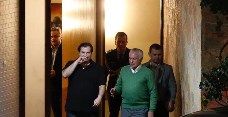 O presidente Michel Temer, o senador AA�cio Neves (PSDB-MG) e o ministro de Minas e Energia, Moreira Franco estavam presentes no encontro. De acordo com o EstadA?o, a reuniA?o nA?o constava na agenda de Temer e de Maia.