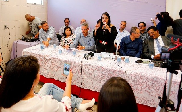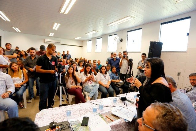 Coletiva de imprensa, realizada no Restaurante Popular na manhA? desta segunda-feira (17).