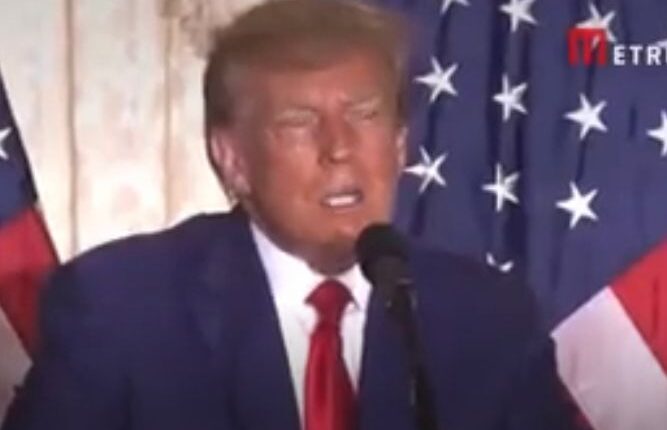 “Nunca pensei que algo assim pudesse acontecer na América. O único crime que cometi foi defender destemidamente nossa nação daqueles que procuram destruí-la”, disse Donald Trump em pronunciamento aos jornalistas.