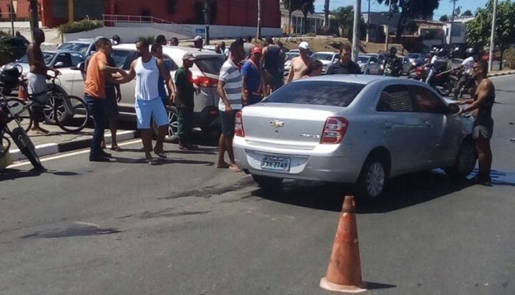 VeA�culo A� lanA�ado apA?s colisA?o traseira e trA?s pedestres sA?o atropelados em Lauro de Freitas