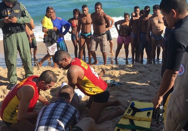 Hoje por volta das 16::00hs no Farol da barra, um jovem ainda nA?o identificado foi vitima de afogamento. Segundo informaA�A?o do musico Daniel dos Santos que estava na hora do resgate, trata-se de um jovem aparentando uns 30 anos vendedor de amendoim que entrou no mar e teve dificuldades de retornar. Daniel relatou que um rapaz que trabalha na barraca, percebeu que o jovem tinha sumido e entrou mar para salvar o rapaz que estava desacordado. Logo em seguida chegou o helicA?ptero da PM e o SAMU, que tentaram reanimar o rapaz atravA�s de procedimentos tA�cnicos e nA?o conseguiram. Segundo informaA�A�es a policia militar levou o rapaz para o hospital, mas ninguA�m sabe informar o seu estado de saA?de.