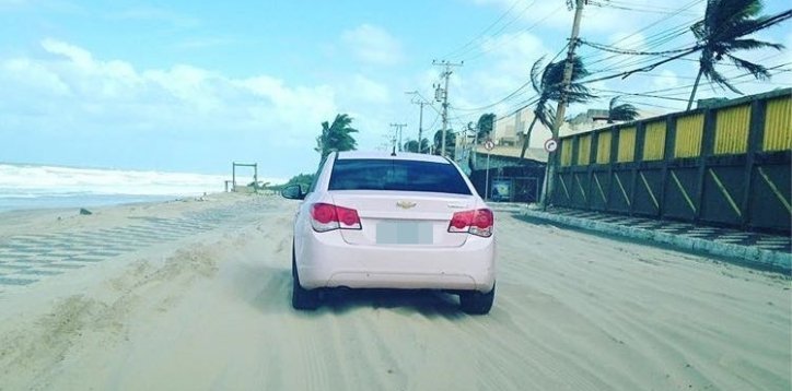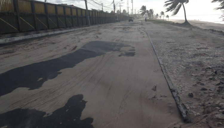 Ventania faz com que areia da praia invada as ruas na Praia de Ipitanga