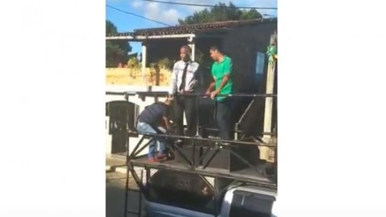 Vale ressaltar que o uso do carro de som A�A�proibido em campanhas eleitorais, ou seja, o candidato aparentemente estava fazendo propaganda irregular.