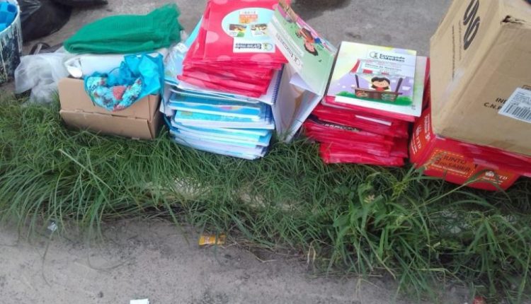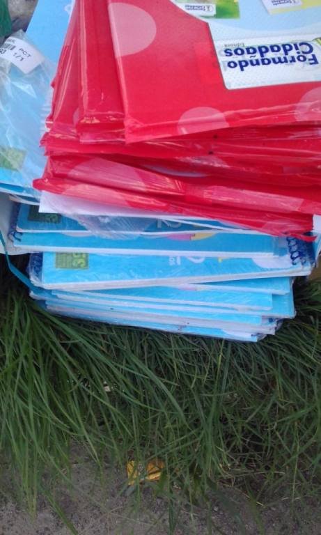 O fato ocorreu no bairro de Itinga, próximo a antiga base da guarda municipal. Segundo informações não é notório se o material pertence a rede pública ou particular de ensino. O que é de se espantar é que o material é aparentemente novo.