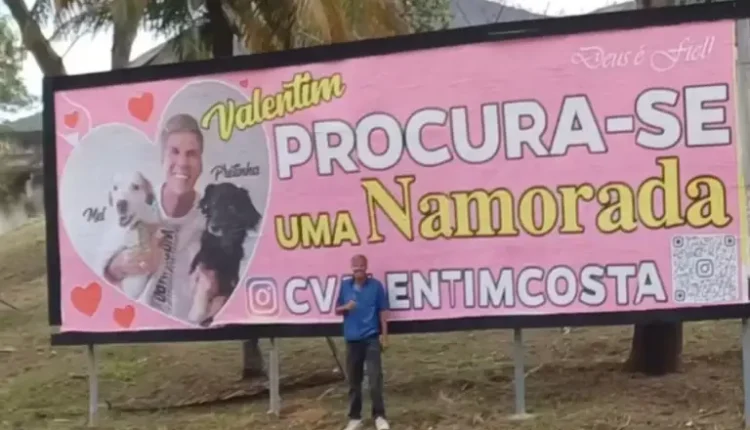 Os outdoors apresentam a frase “Procura-se uma namorada” acompanhada de uma foto de Carlos, suas duas cadelinhas, Mel e Pretinha, além do nome e Instagram dele, com um QR Code para facilitar o contato.