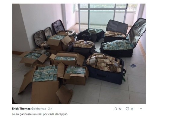 Apesar da seriedade da apreensA?o de dinheiro em umA�a�?bunkera�?A�que supostamente pertencia ao ex-ministro Geddel Vieira Lima (PMDB), a internet jA? disparou a metralhadora de memes. Um dos que a�?trolloua�? o peemedebista foi o youtuber Whindersson Nunes.